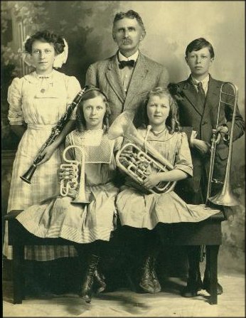 This is a photo of a famil y band. The girl playing clarinet has a Boehm system with a "wrap-around" register key. The father in back looks amazingly like Jed Clampett from the "Beverly Hillbillies". :)
