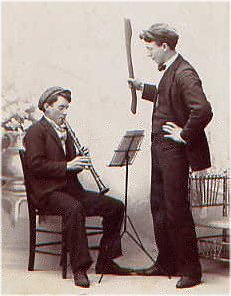 A little faded and small, but looks like a clarinet lesson.
