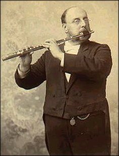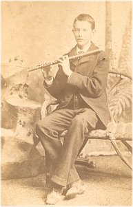 Here we have a gentleman holding an early metal Boehm system flute.