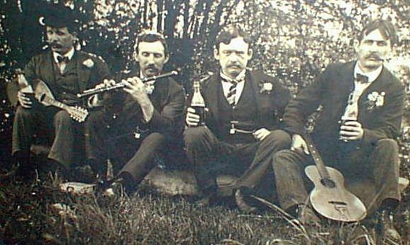 Here is a quartet of musicians enjoying some cold ones. :) The flute player