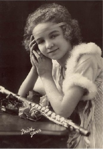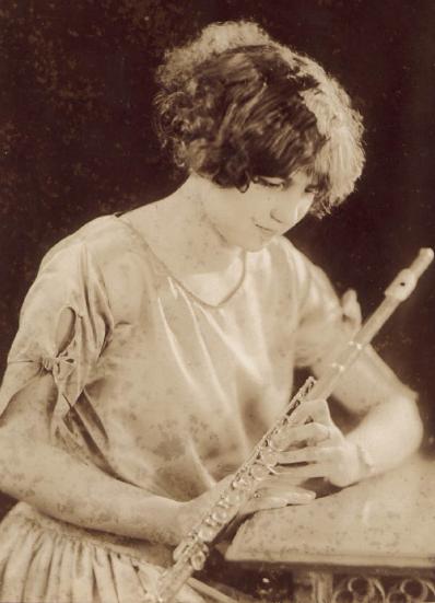 This pic seems to be from the 1920's. She is holding a metal boehm system