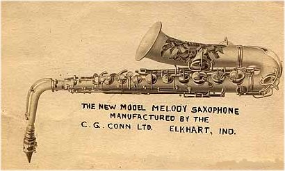 This is a vintage postcard distributed by Conn showing their new C-melody