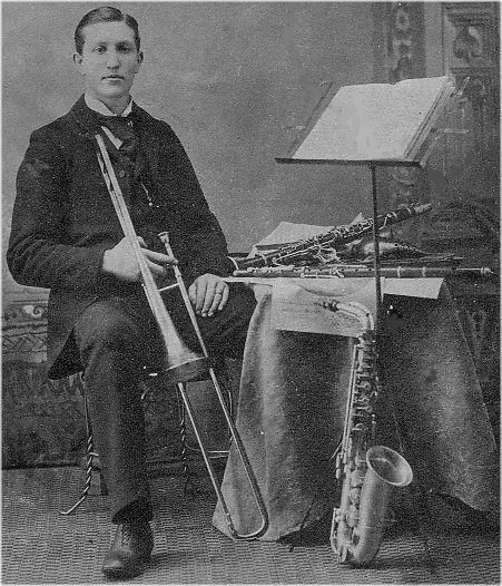 has a very old alto sax, and Albert system clarinet and an 8-key wooden